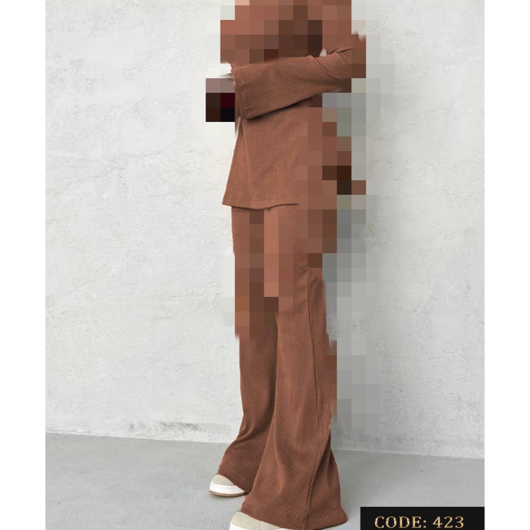 423 تیشرت یقه اسکی و شلوار بوتکات فانریپ پنبه کبریتی فری سایز 36 تا 42 تن شیک