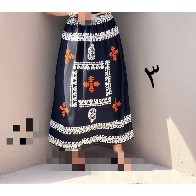 دامن نخی طرح دار چاپی حاشیه دار فری سایز ۴۰ تا ۵۰ قد ۱۰۰ تن شیک