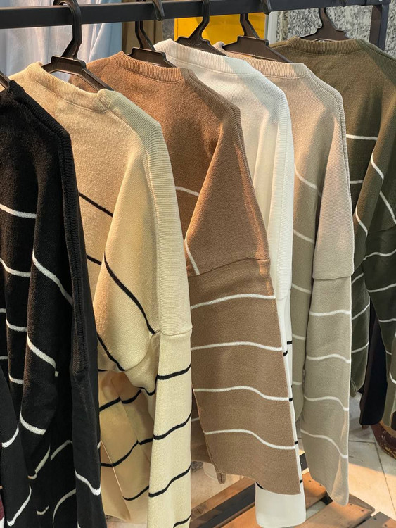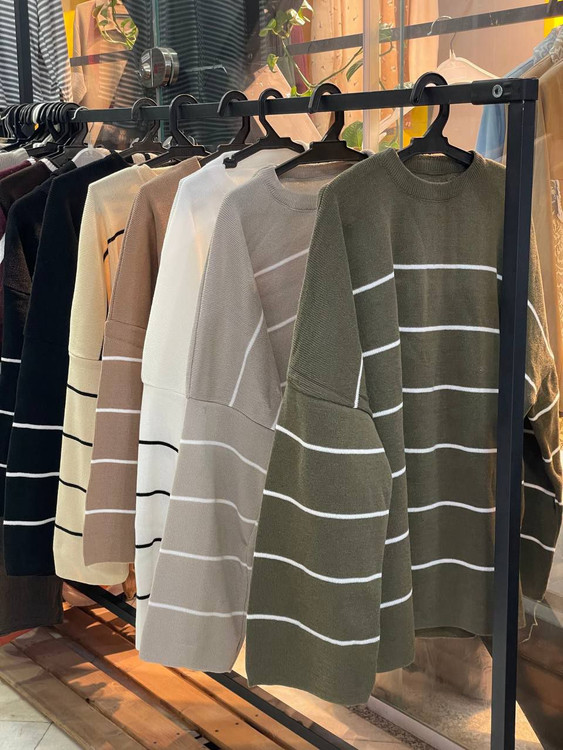 02140 بافت راه راه ریز گرد بافت آکریلیک قواره دار قد ۷۰ فری سایز ۳۶ تا ۴۸ تن شیک