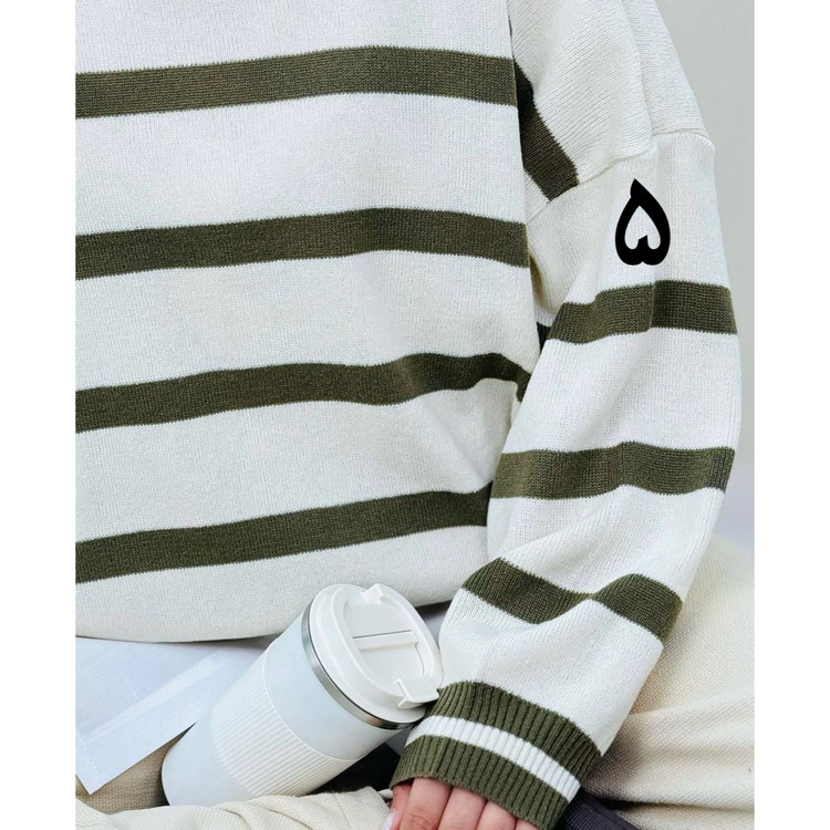 02114 پولیور بافت راه راه بافت درشت جنس اکریلیک عالی فری سایز ۳۶ تا ۴۶ تن شیک