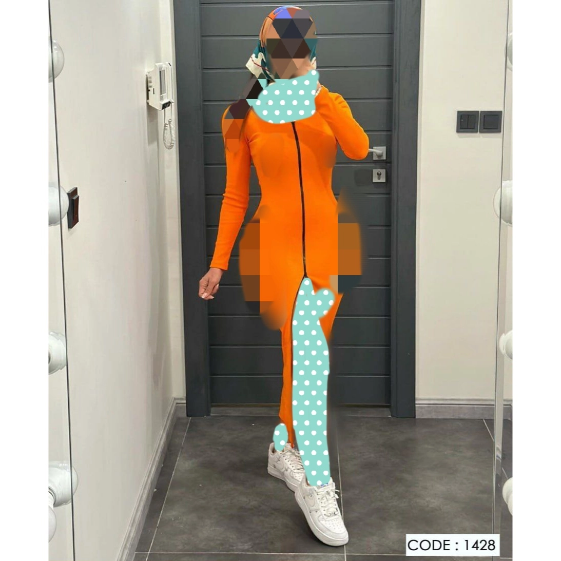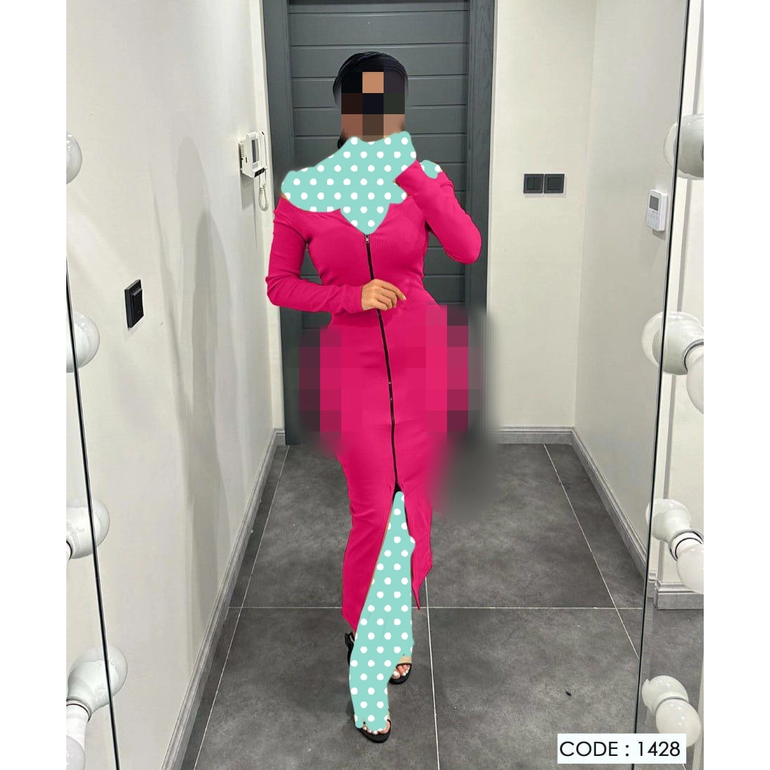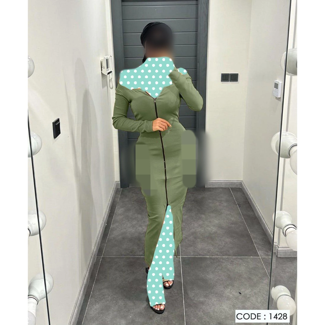 1428 پیراهن ماکسی یقه خشتی جلو زیپدار فانریپ کبریتی فری سایز 38 تا 44 تن شیک