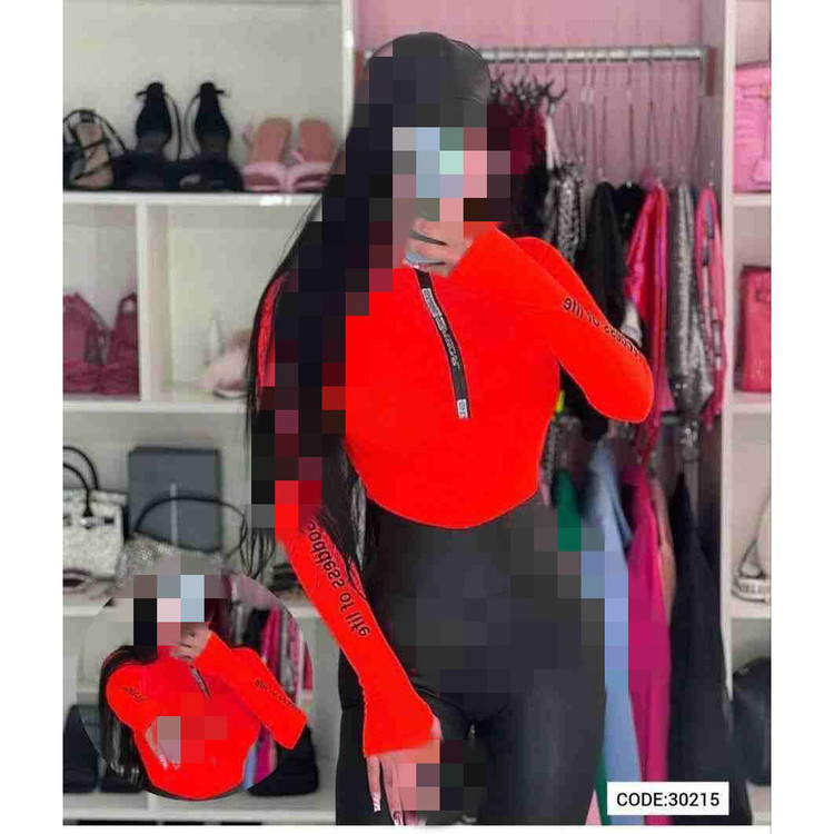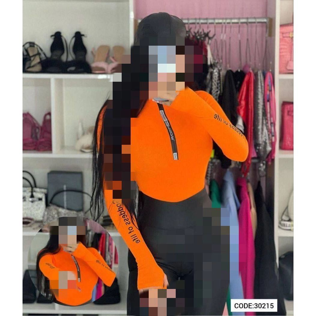 30215 بادی آستین فینگری شستی یقه زیپ دار نواردوزی کبریتی فری سایز ۳۶ تا ۴۲ تن شیک