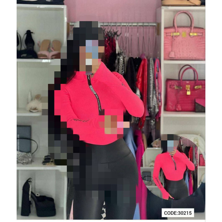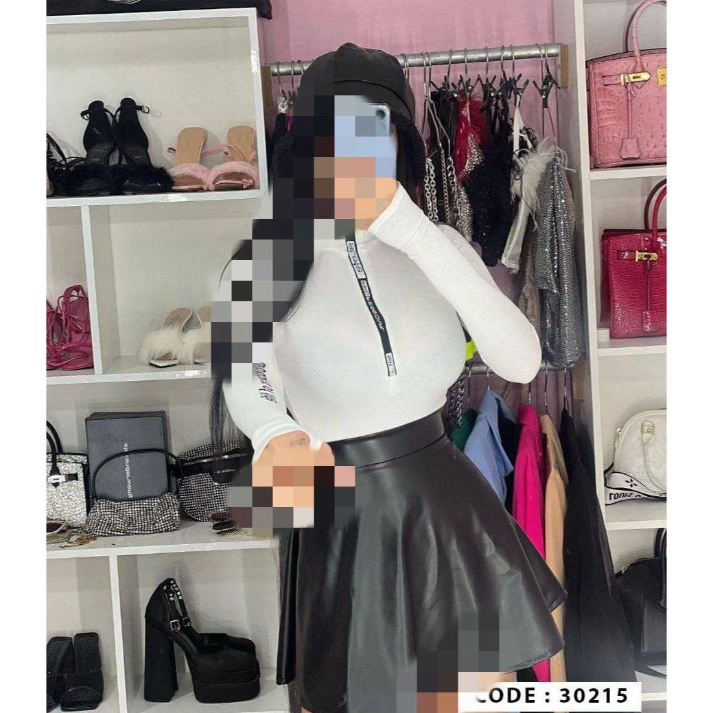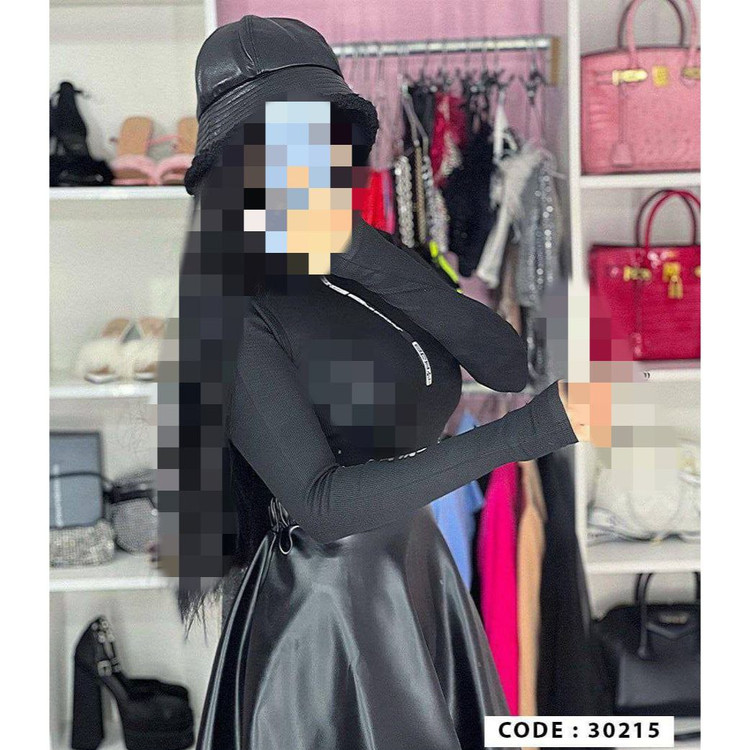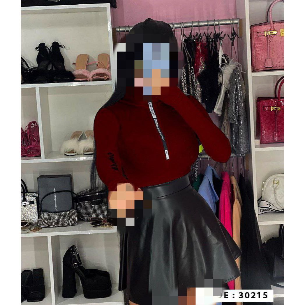 30215 بادی آستین فینگری شستی یقه زیپ دار نواردوزی کبریتی فری سایز ۳۶ تا ۴۴ تن شیک