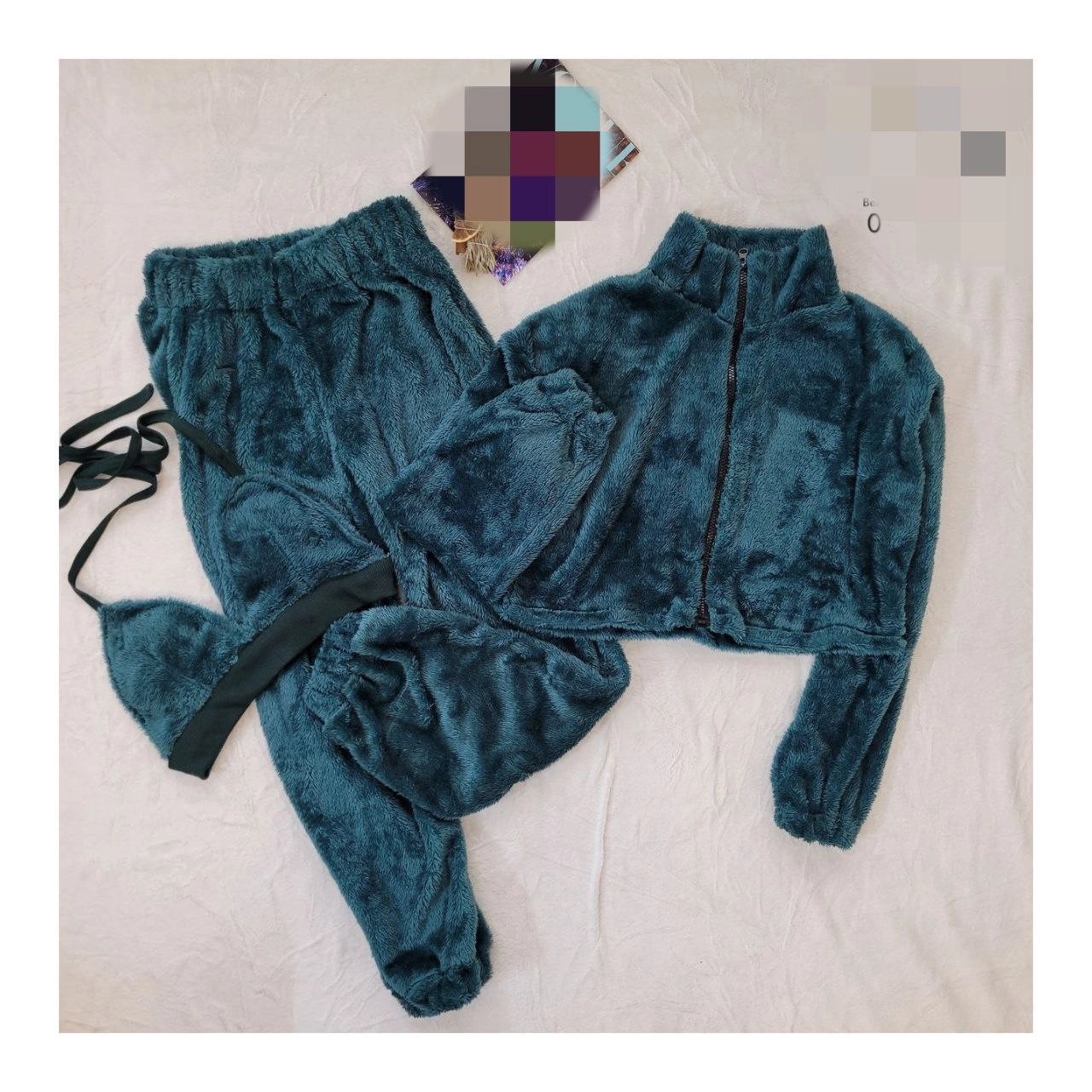 040801 ست ۳ تکه نیمتنه و‌ کراپ و شلوار تدی فری سایز ۳۶ تا ۴۴ تن شیک 💥 تخفیفات زمستانه 💥