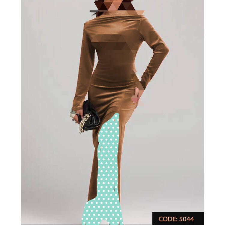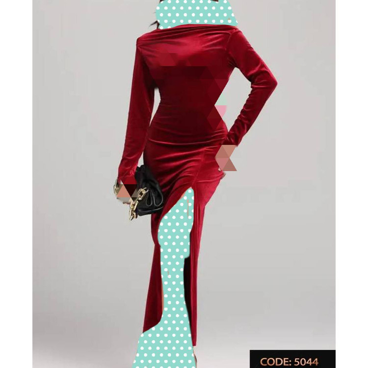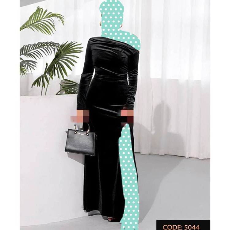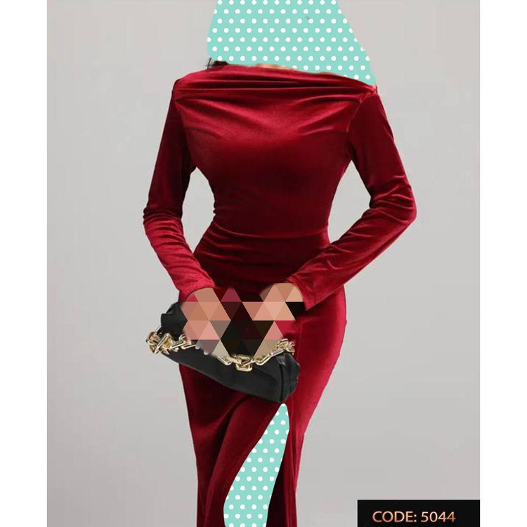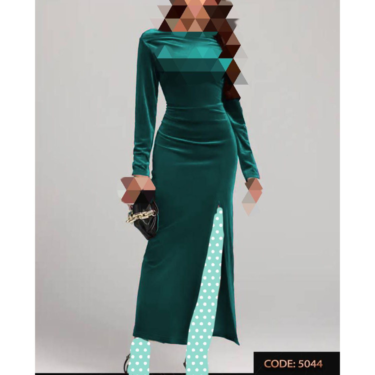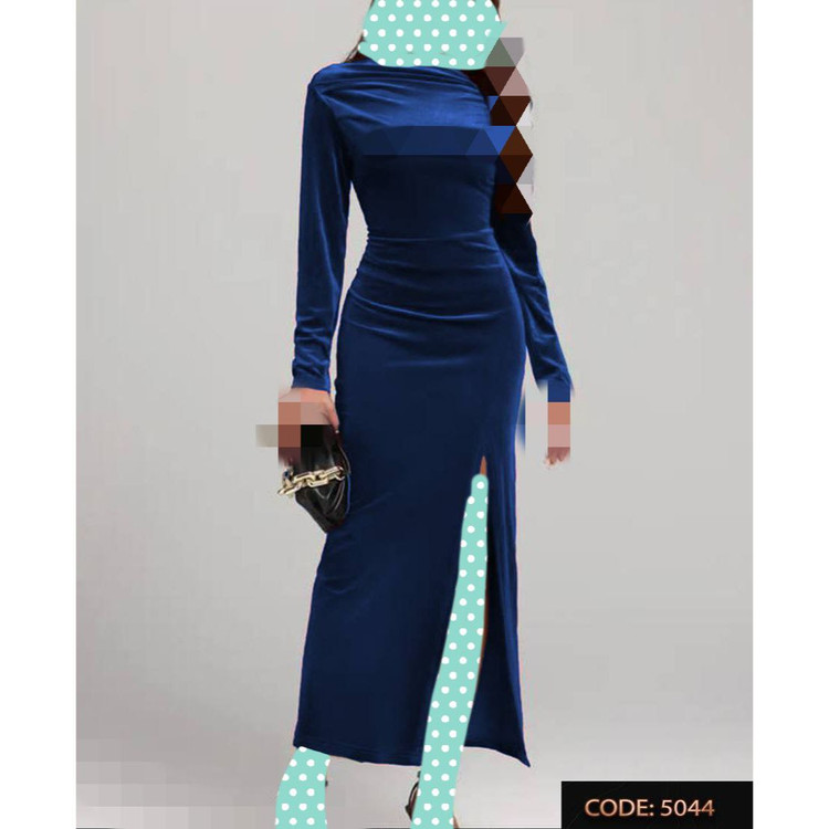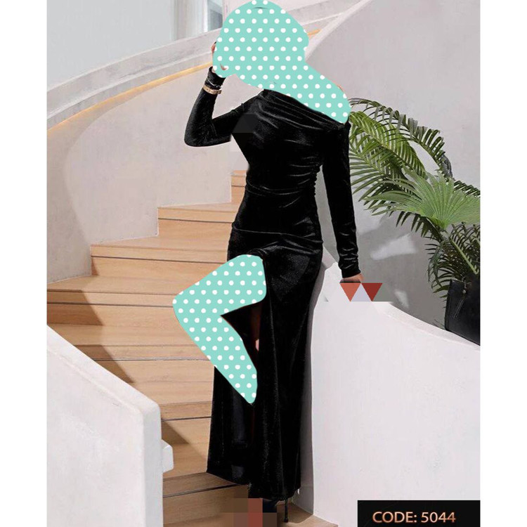 5044 پیراهن ماکسی مخمل کره ای چاکدار قد از سرشانه ۱۲۵ فری سایز ۳۶ تا ۴۴ تن شیک