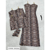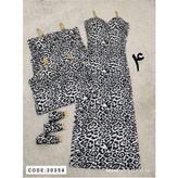 30354 پیراهن ماکسی کاپدار پلنگی نواردوزی فیلامنت لاکرا فری سایز ۳۶ تا ۴۴ تن شیک