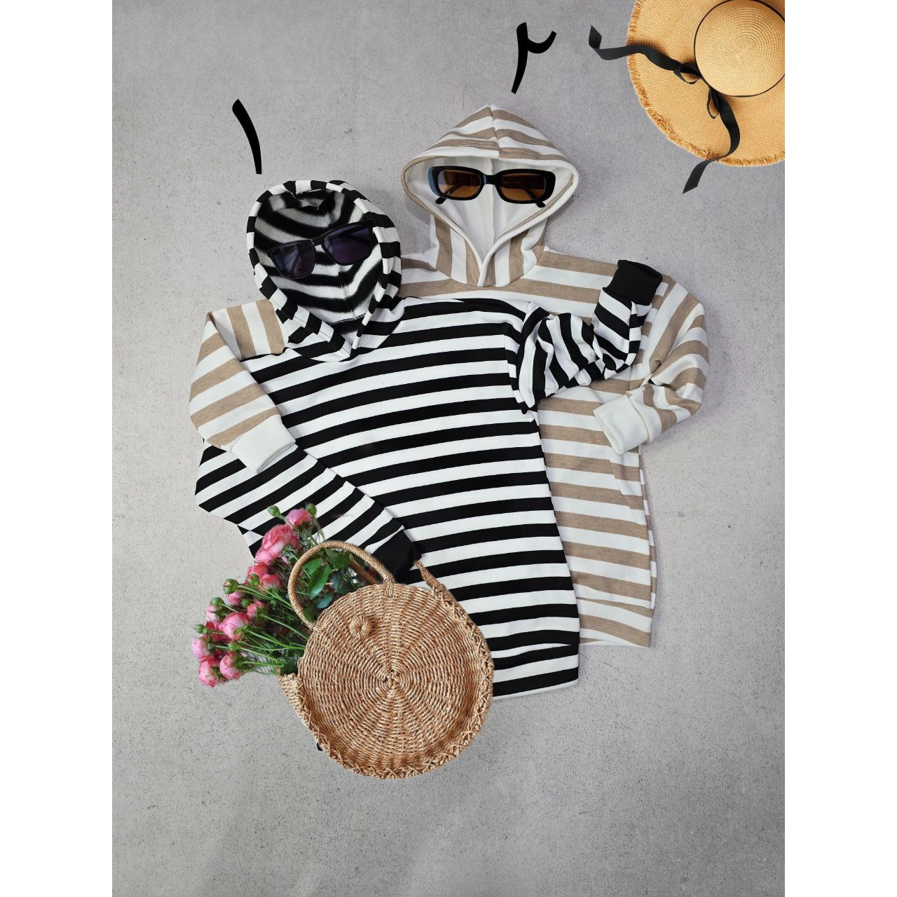 NELI هودی دورس کرکی راه راه کلاهدار قد 75 فری سایز 36 تا 44 تن شیک