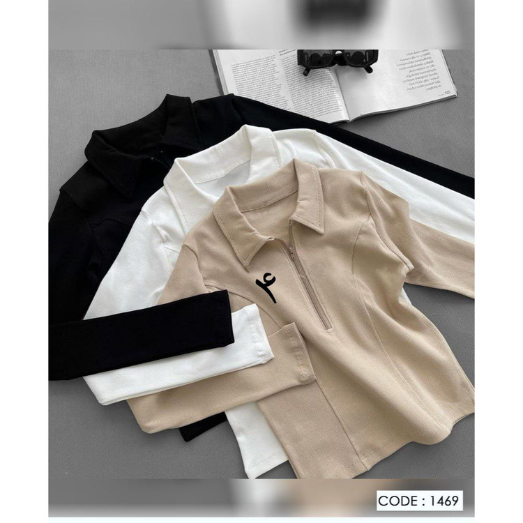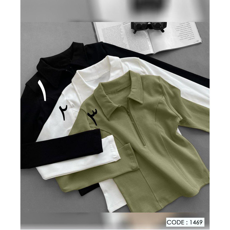 1469 بلوز یقه دار نیمزیپ کبریتی قد ۵۵ فری سایز ۳۶ تا ۴۲ تن شیک