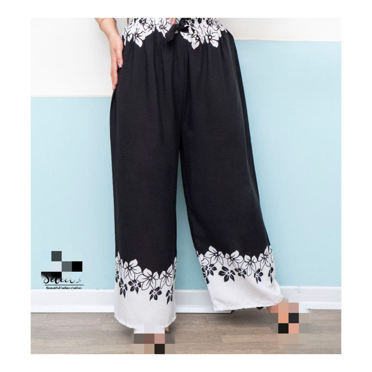 041002 شلوار بگ گشاد نخی فوق العاده عالی حاشیه دار فری سایز ۴۲ تا ۶۰ قد ۱۰۰ تن شیک