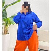 02162 مانتو شومیزی شومیز مانتویی تونیک جلودکمه ساتن ال ایکس فری سایز ۳۶ تا ۴۶ قد ۷۵ تن شیک
