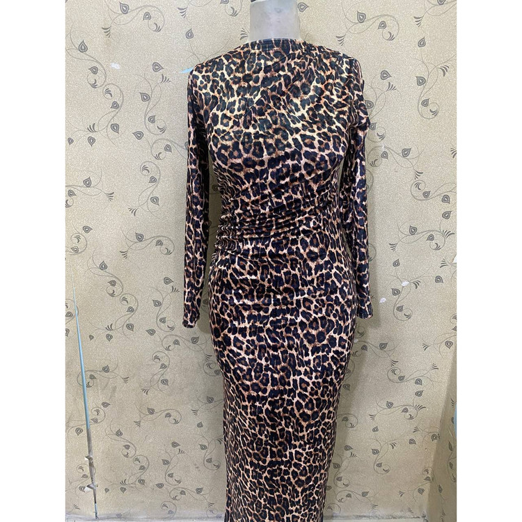 5053 پیراهن ماکسی بلند پلنگی مخمل کره ای دو ور کش قد ۱۳۵ فری سایز ۳۶ تا ۴۸ تن شیک