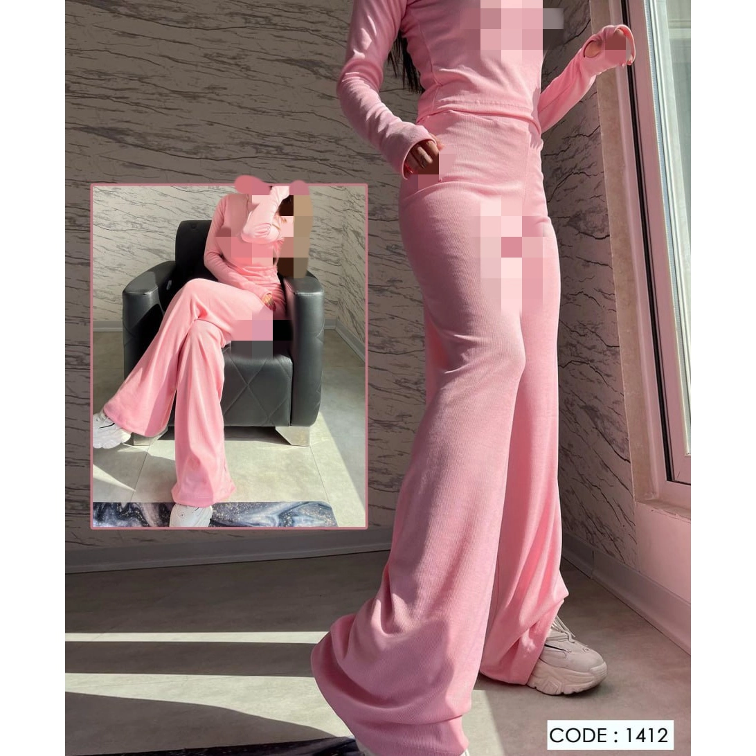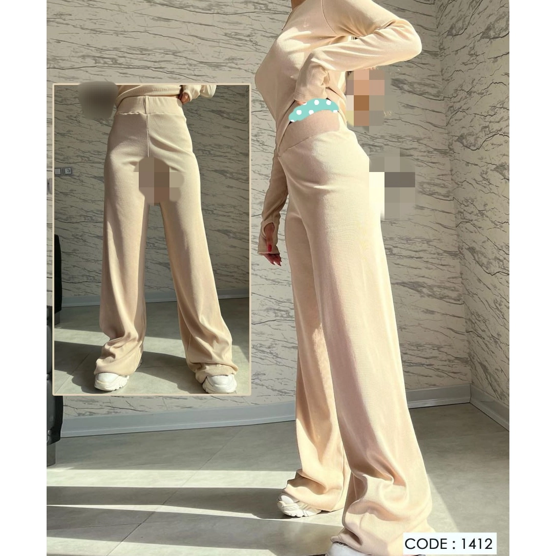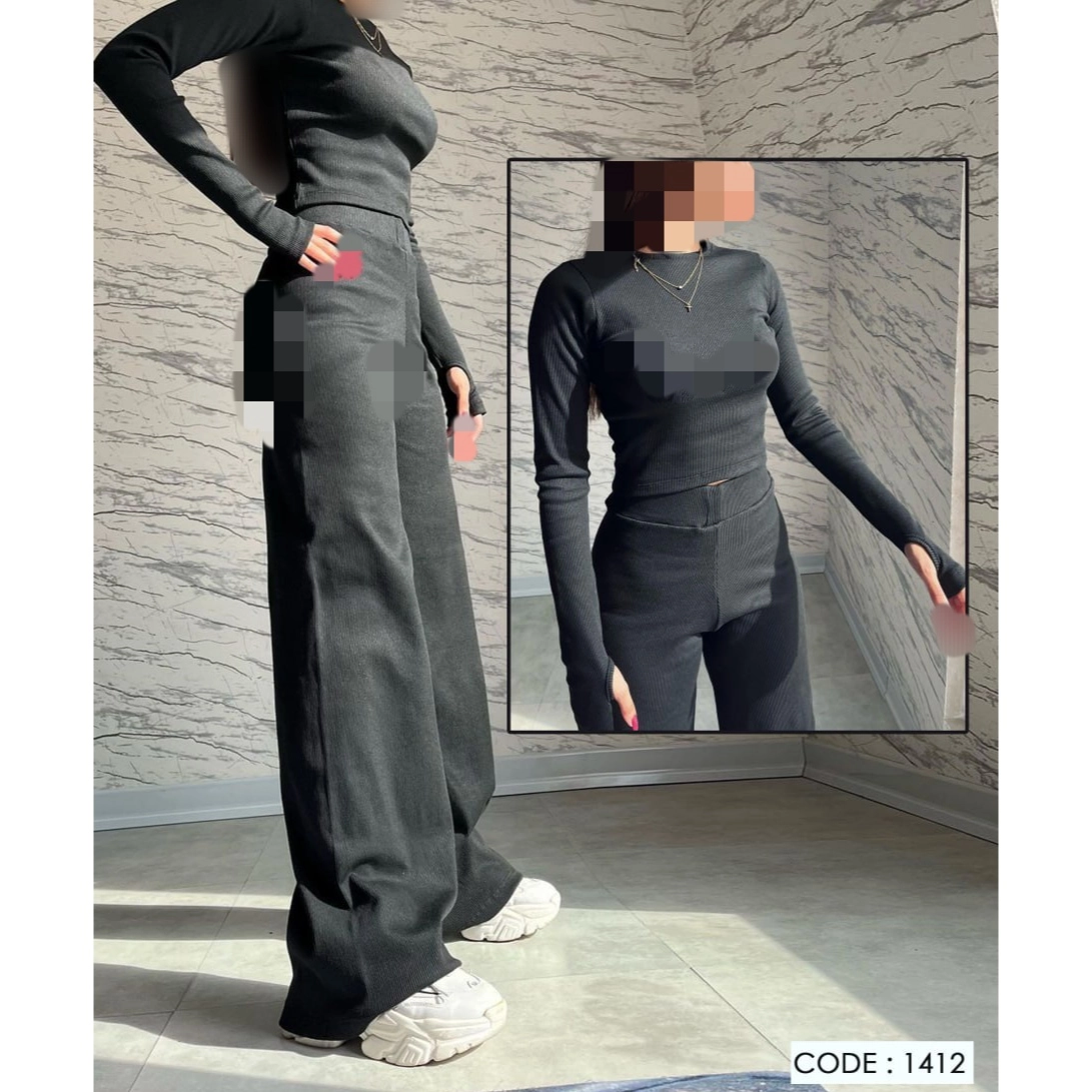 1412 ست کراپ و شلوار آستین فینگری فانریپ کبریتی فری سایز 36 تا 42 تن شیک