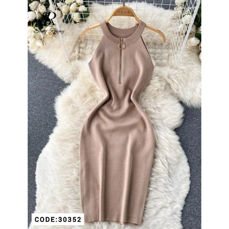 30352 تونیک ماکسی پیراهن بلوز حلقه ای زیپ دار کبریتی فری سایز ۳۶ تا ۴۲ تن شیک