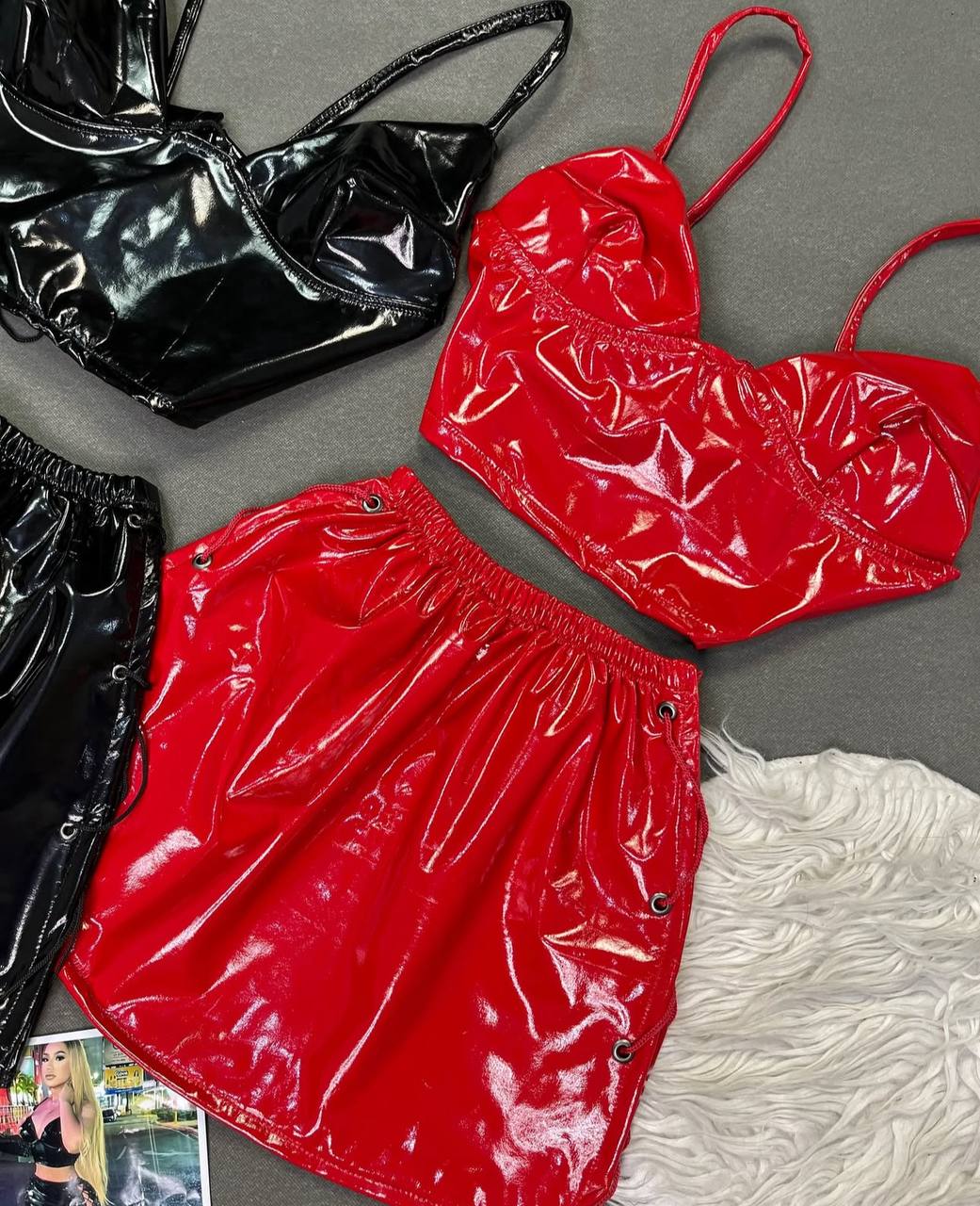 054 ست کراپ نیمتنه و دامن لاتکس براق فری سایز ۳۶ تا ۴۲ تن شیک