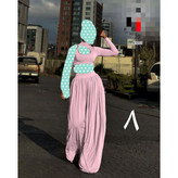 61203 ست کراپ نیمتنه نیم تنه و شلوار پیله دار سوپر فیلامنت قواره دار فری سایز ۳۸ تا ۴۶ تن شیک