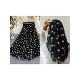 70108 ست دامن فری سایز ۳۶ تا ۵۰ و مینی اسکارف بابونه حریر تن شیک