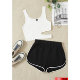 1504 ست کراپ نیمتنه نیم تنه شورتک شرتک فانریپ پنبه کبریتی فری سایز 36 تا 42 تن شیک