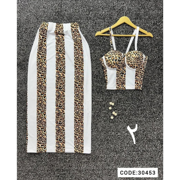 30454 ست کراپ نیمتنه نیم تنه و دامن کاپدار چاپی فری سایز ۳۶ تا ۴۲ تن شیک