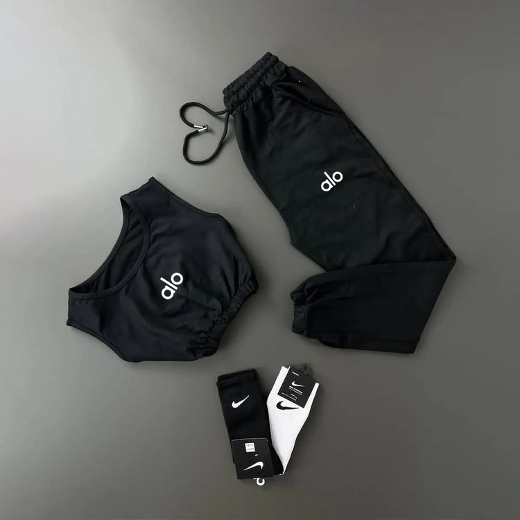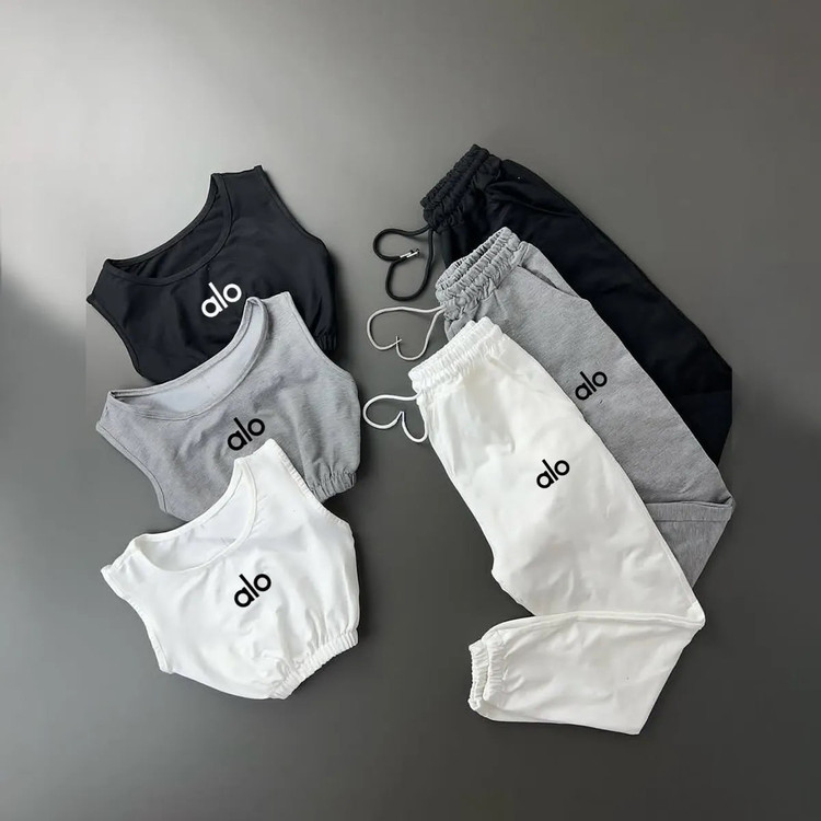 BT ست کراپ نیمتنه نیم تنه و شلوار اسلش الو alo گلکسی عالی فری سایز ۳۶ تا ۴۲ تن شیک