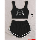 1511 1508 ست کراپ نیمتنه نیم تنه و شورتک شرتک فانریپ پنبه کبریتی فری سایز 36 تا 42 تن شیک