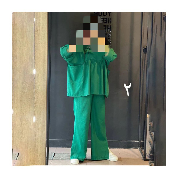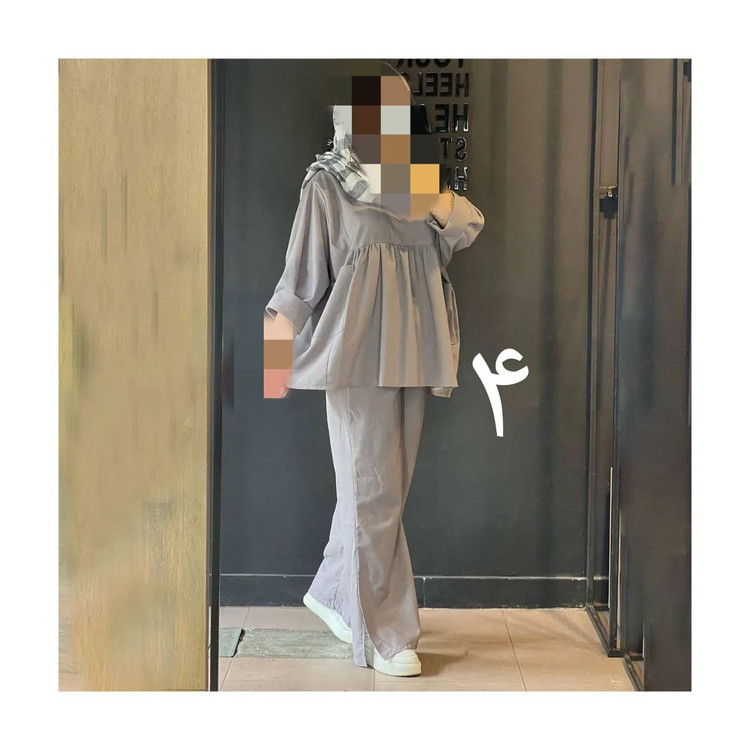 BT ست دو تکه مانتو پیراهن عروسکی چسبی و شلوار بگ لنین فری سایز ۳۶ تا ۴۲ تن شیک