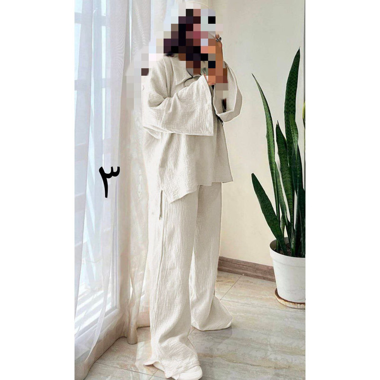 مانتو کار دارای چاک بقل و همین طور شلوار، شلوار داری جیب و (پشت کمر کش)