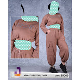 35009 ست کراپ نیمتنه نیم تنه و شلوار کارکو اسلشی دورس داخل کرکی فری سایز ۳۶ تا ۴۸ تن شیک