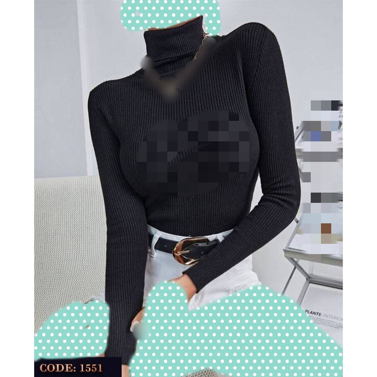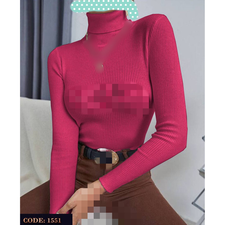 1551 تیشرت بلوز یقه اسکی دوبل فانریپ کبریتی عالی فری سایز 36 تا 42 تن شیک