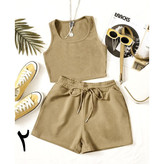 BT ست کراپ نیمتنه نیم تنه شورتک شرتک پنبه کبریتی فری سایز ۳۶ تا ۴۲ تن شیک
