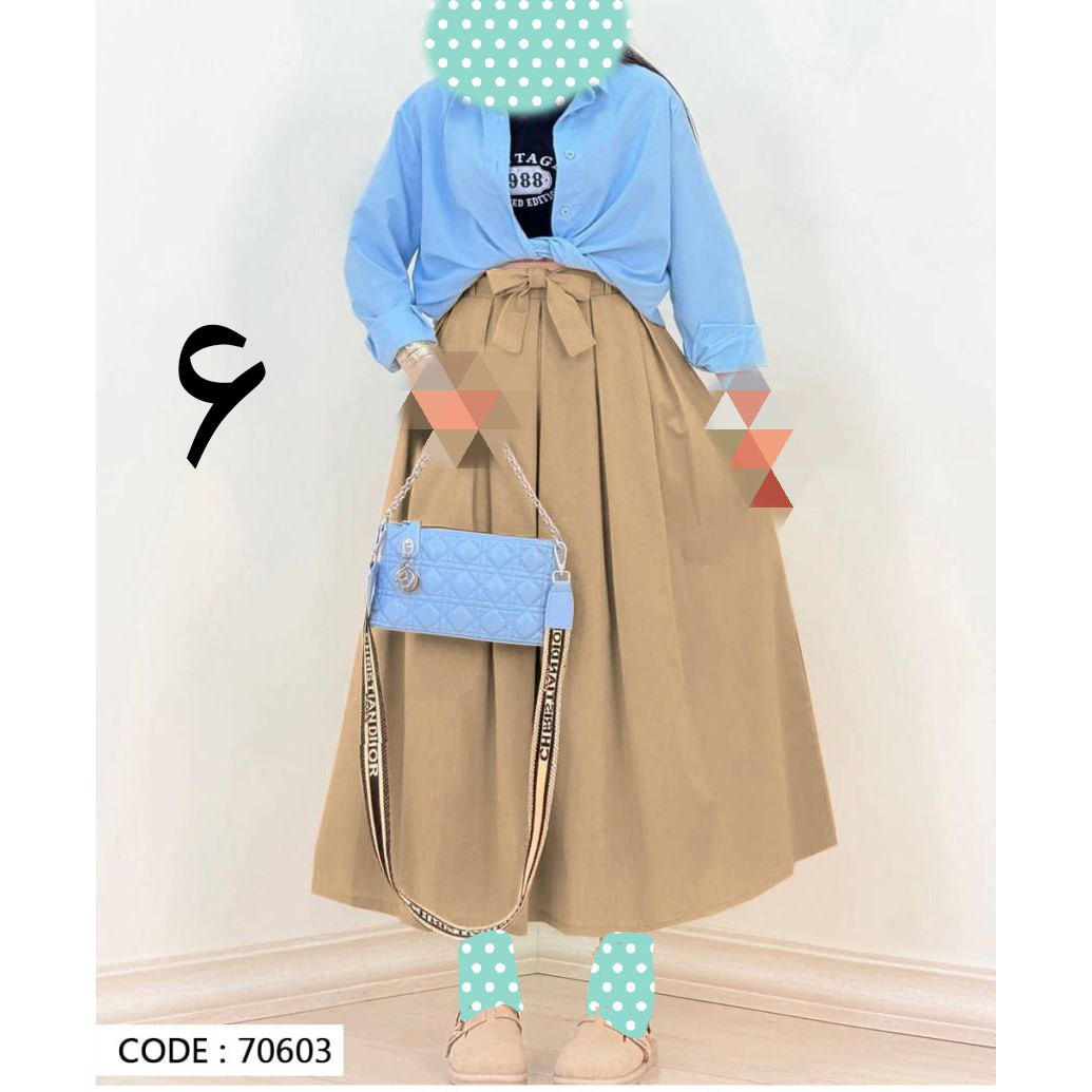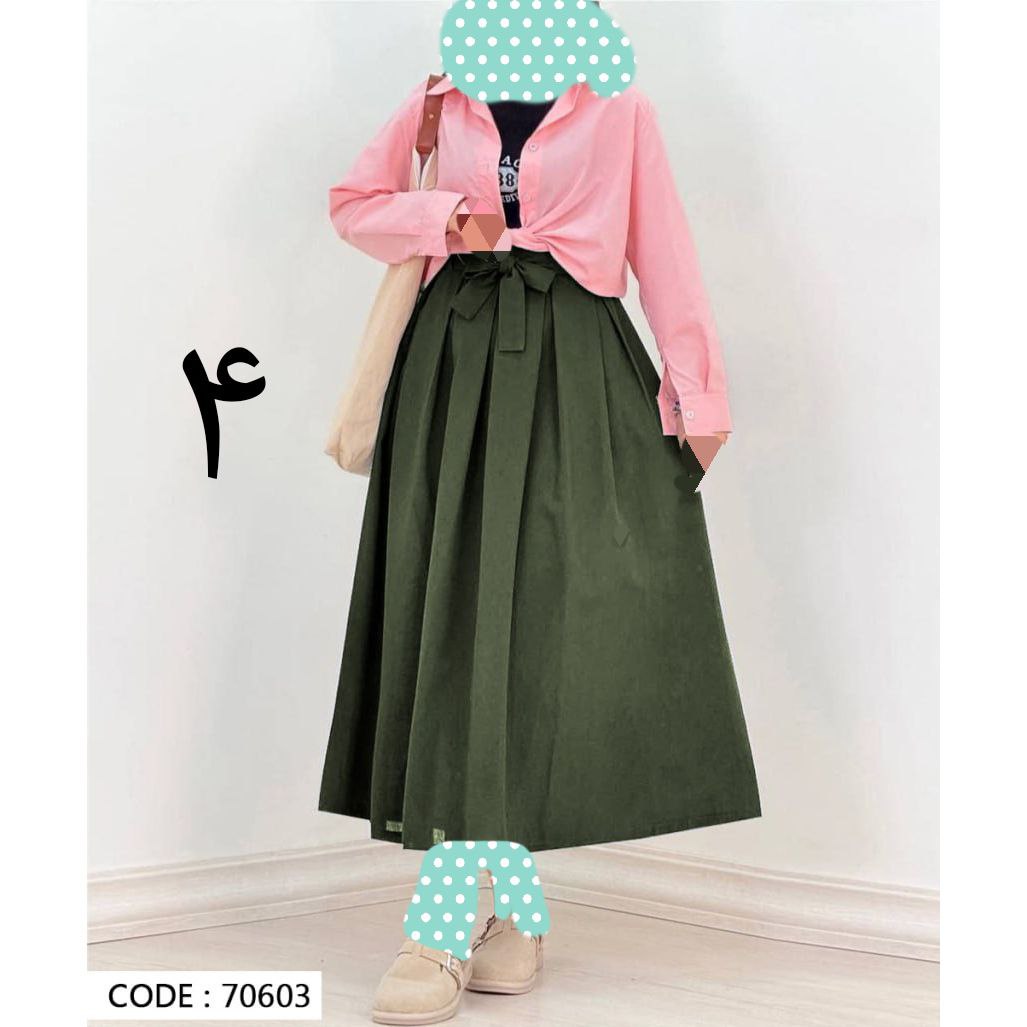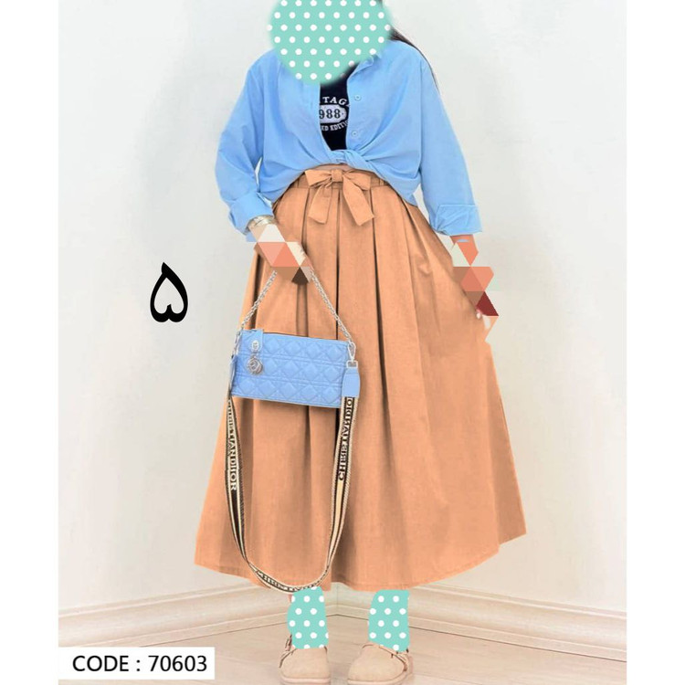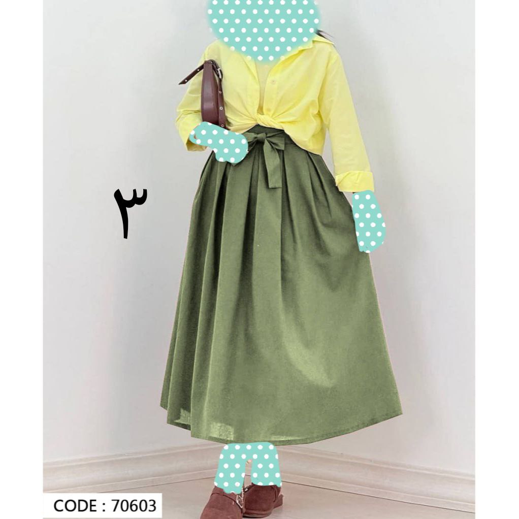 70603 دامن کمر پاپیونی لینن قد ۹۵ فری سایز ۳۸ تا ۴۲ تن شیک