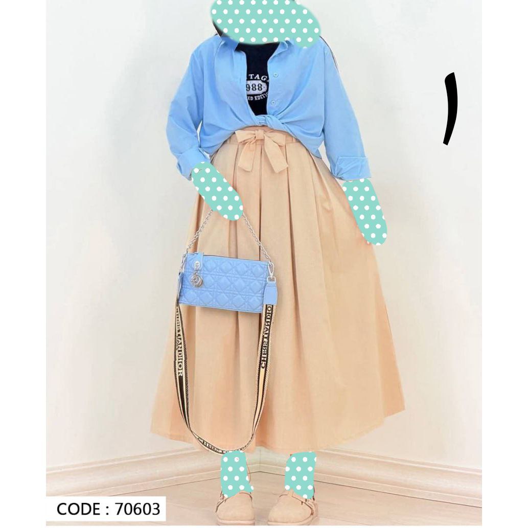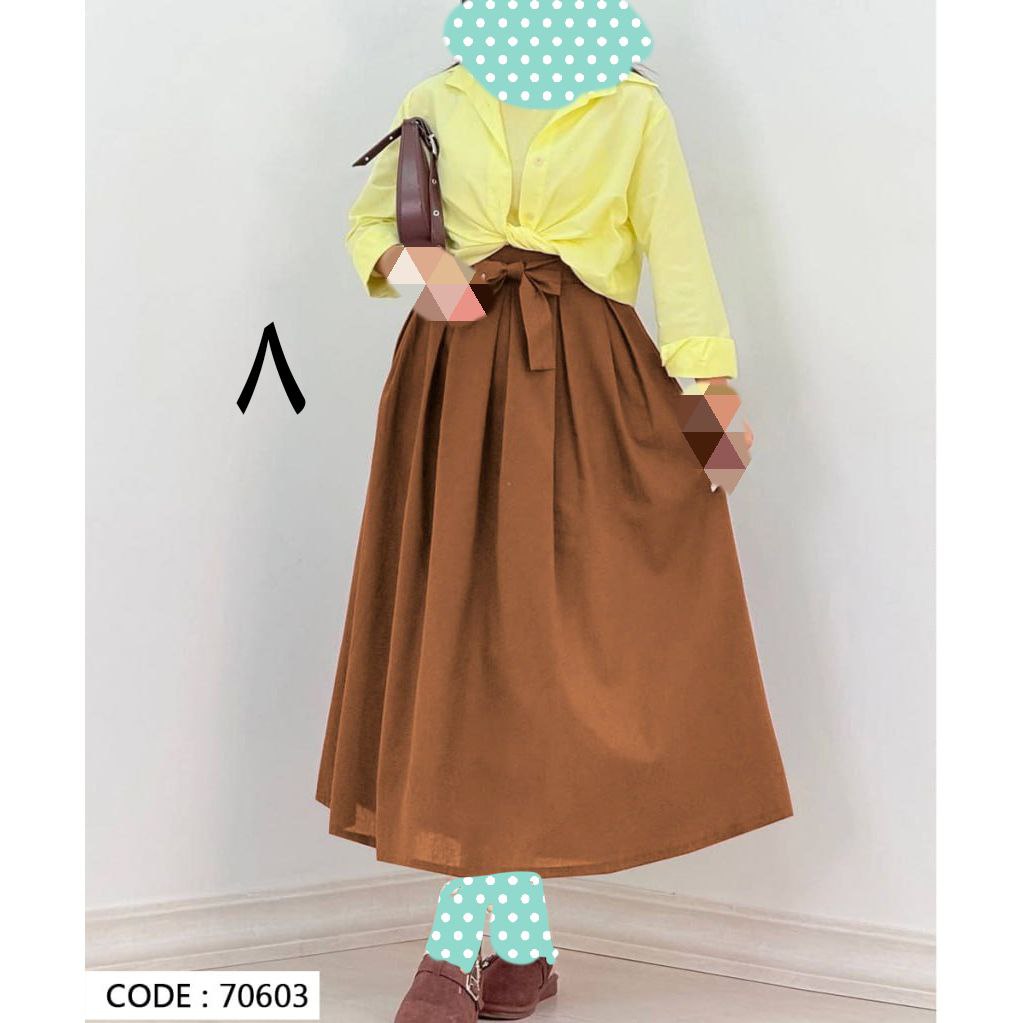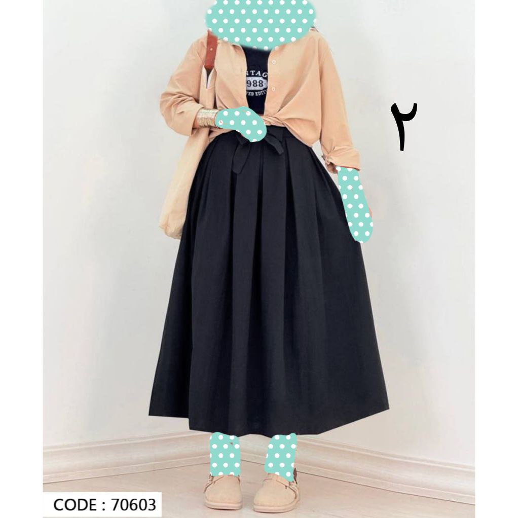 70603 دامن کمر پاپیونی لینن قد ۹۵ فری سایز ۳۸ تا ۴۲ تن شیک