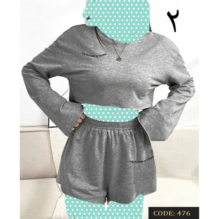 476 ست کراپ نیمتنه و شورتک شرتک گلکسی عالی فری سایز ۳۶ تا ۴۲ تن شیک