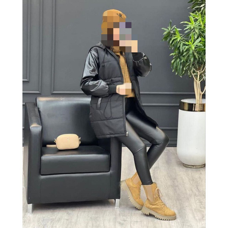 021107 کاپشن مموری آستردار آستین چرم قد ۷۵ فری سایز ۳۸ تا ۴۶ تن شیک