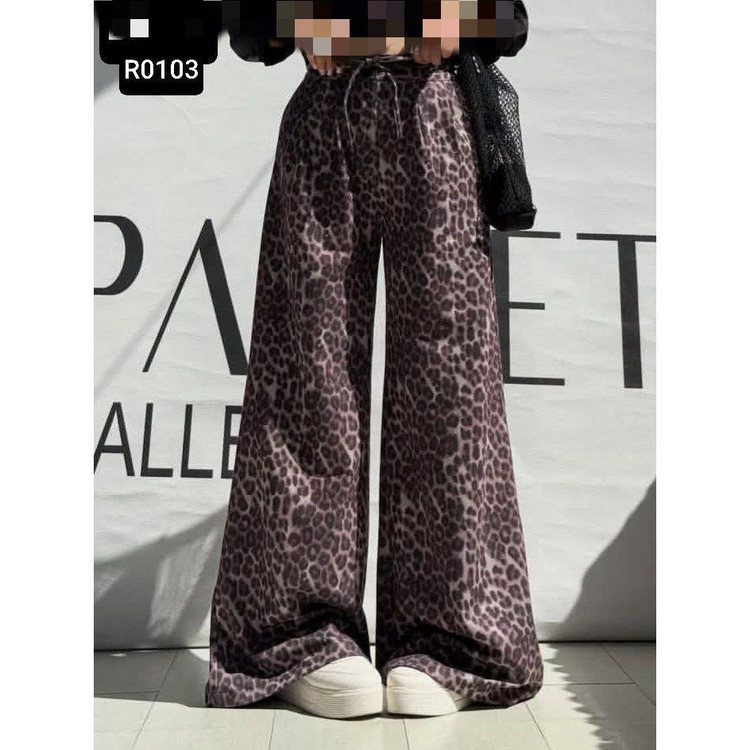 R0103 شلوار تمام بگ پلنگی کمر دورس کمر کشباف قد ۱۰۸ فری سایز ۳۶ تا ۴۲ تن شیک