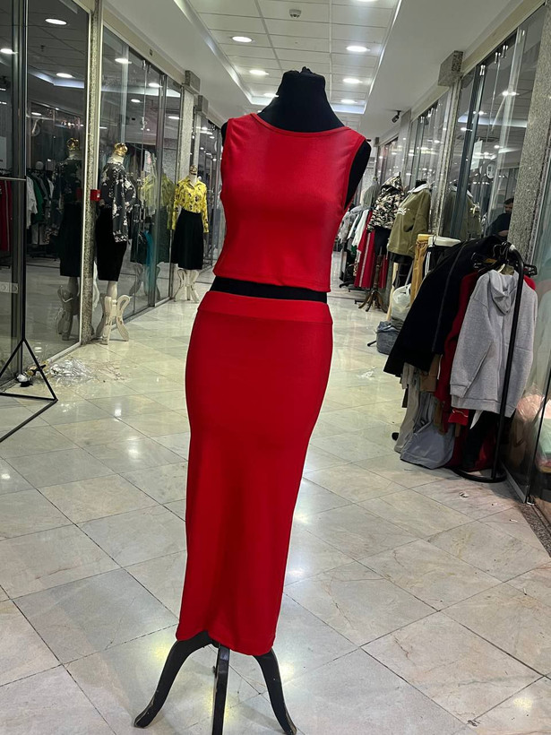 1534 ست کراپ و دامن قرمز یلدایی فانریپ کبریتی فری سایز 36 تا 42 تن شیک