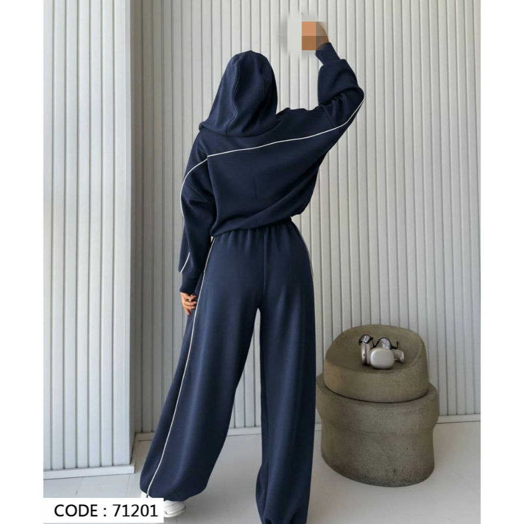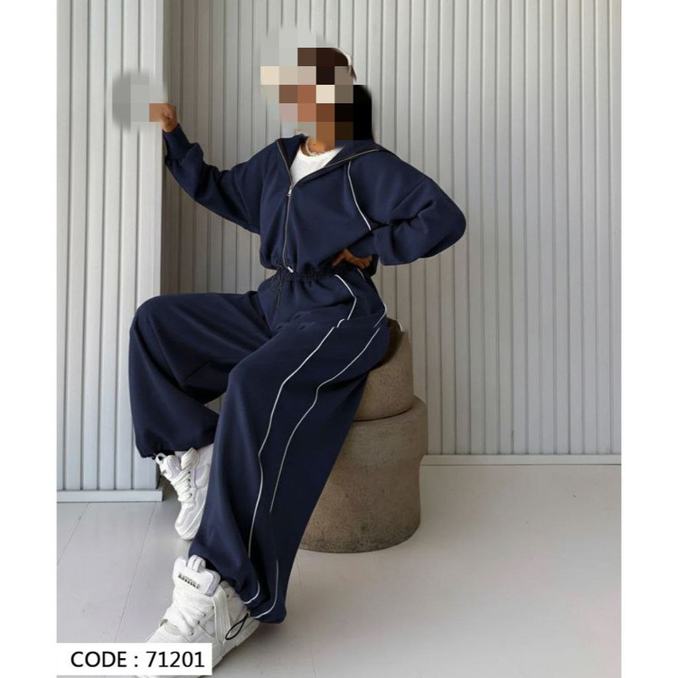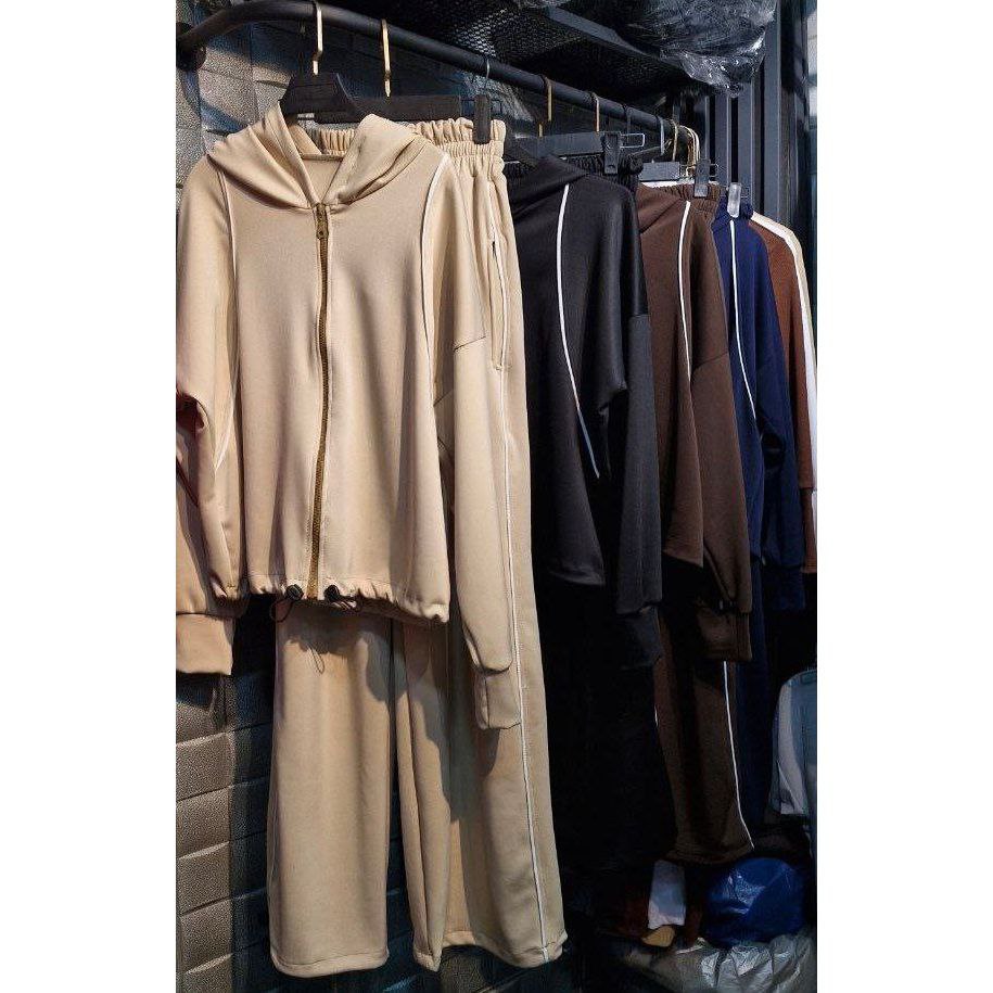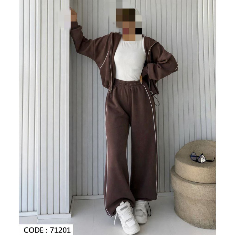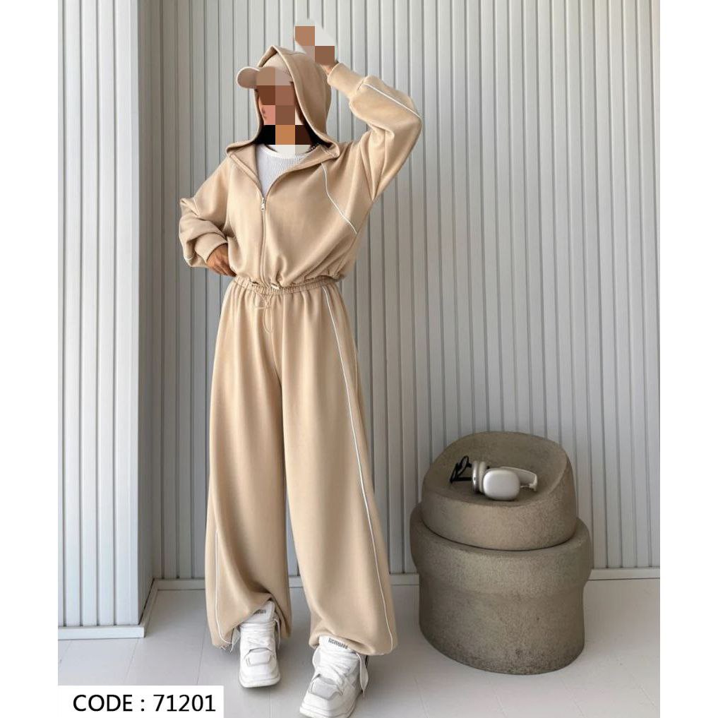 71201 ست کراپ سویشرت سوییشرت سوئیشرت و شلوار دمپا دوکاره اویشو فری سایز قواره آزاد برای سایز ۳۶ تا ۴۴ تن شیک
