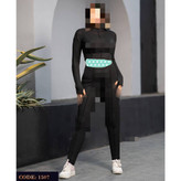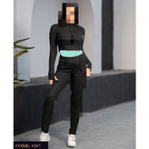 1507 ست کراپ نیمتنه یقه اسکی فینگری و شلوار لگ فانریپ کبریتی رگه دوزی عالی فری ۳۶ تا ۴۲ تن شیک