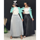 02116 دامن زنانه و‌ دخترانه ساتن پلیسه کره ای قد ۱۰۰ فری ۳۸ تا ۴۶ تن شیک