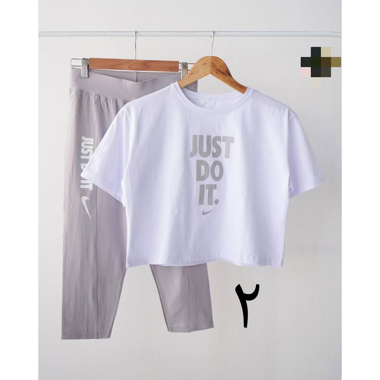 AM ست کراپ نیمتنه شلوارک JUST DO IT فری سایز 36 تا 44 تن شیک