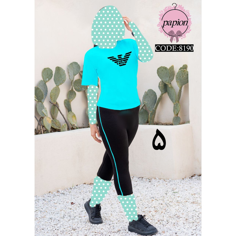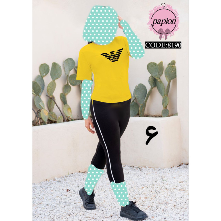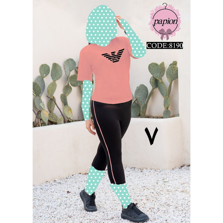 8190 ست تیشرت شلوارک آرمینا پنبه تیپ لاکرا عالی فری سایز ۳۶ تا ۴۲ تن شیک