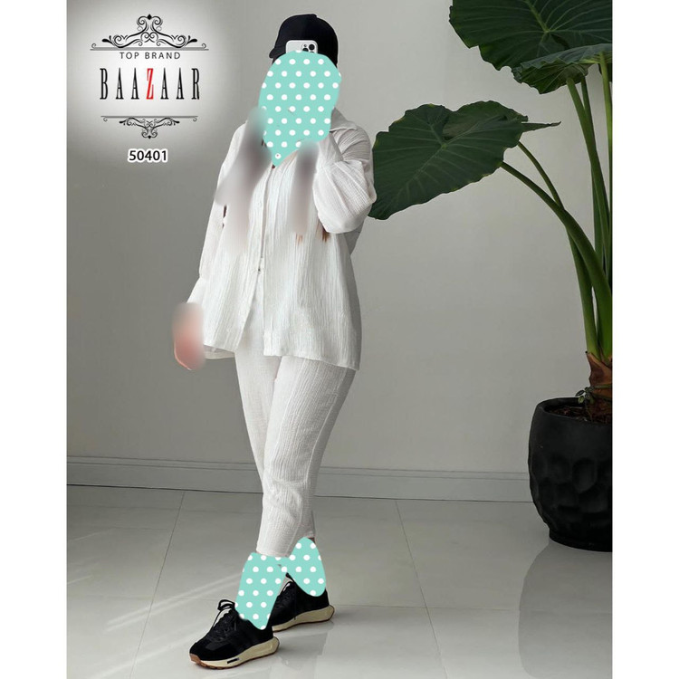 50401 ست مانتو شومیز شلوار جنس کراش فری‌ سایز ۳۶ تا ۴۲ تن شیک