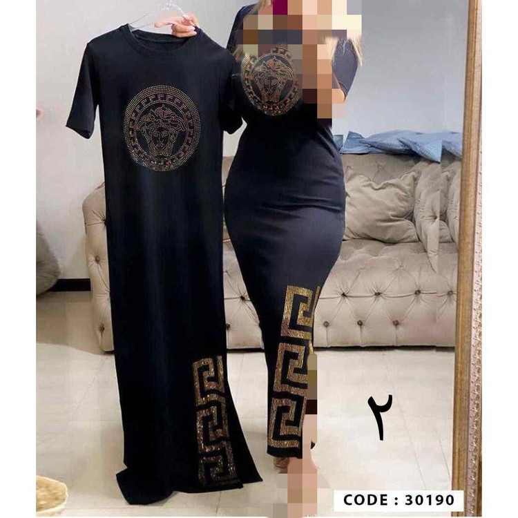 30190 ماکسی تونیک پیراهن شومیز بلوز چاکدار بلند نگین کاری شده کش بافت کبریتی قد۱۳۰ فری سایز ۳۶ تا ۴۲ تن شیک