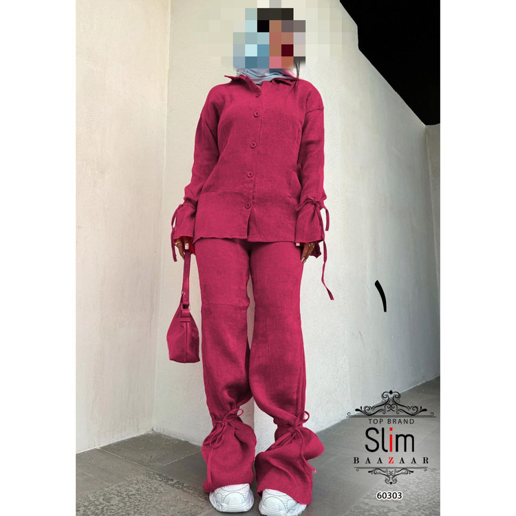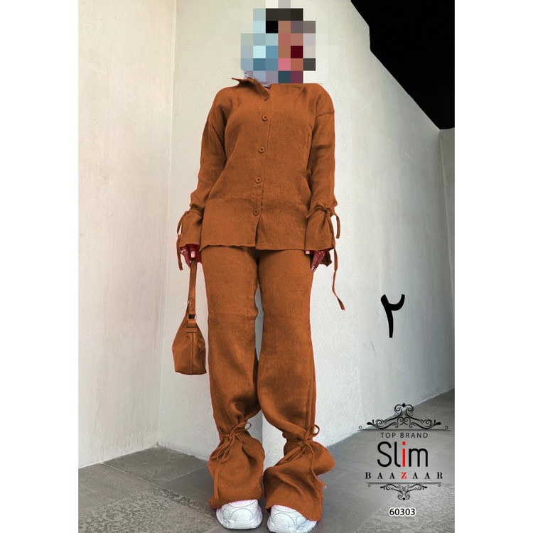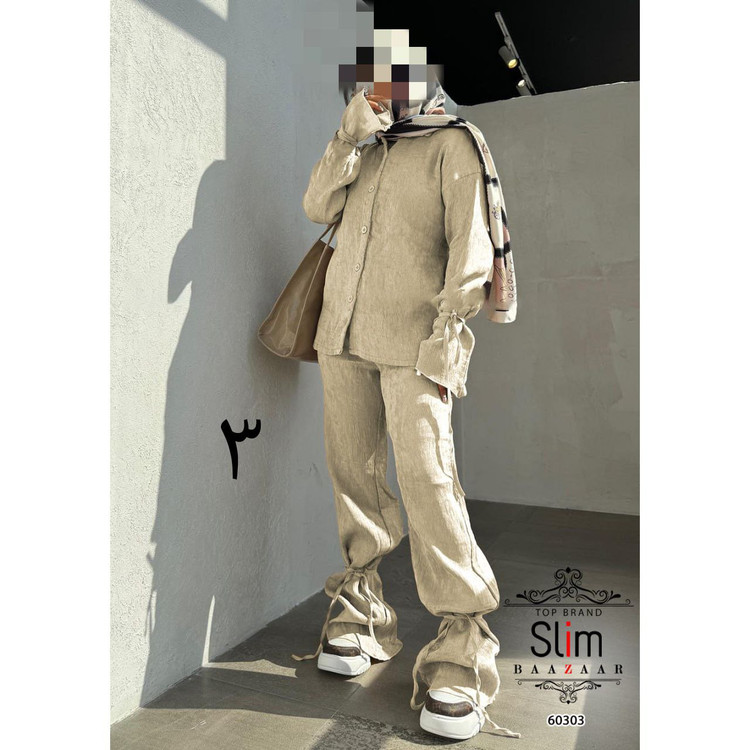 60303 ست مانتو شومیز و شلوار لنین شانتون فری سایز ۳۸ تا ۴۴