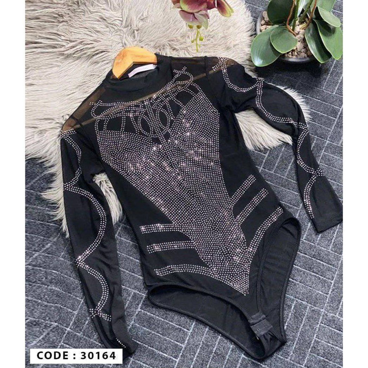 30164 بادی مجلسی بدن‌ نما تور‌ِکشی نگینی نواردوزی فری سایز ۳۶ تا ۴۴ تن شیک