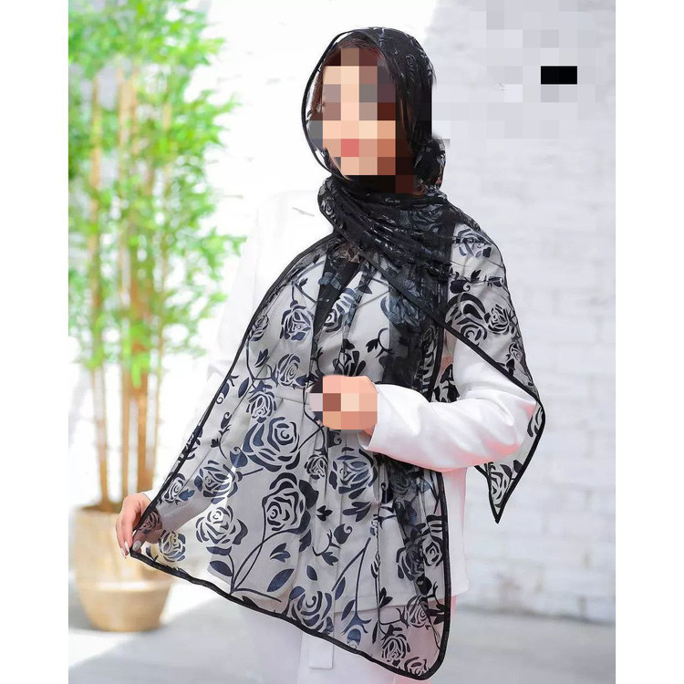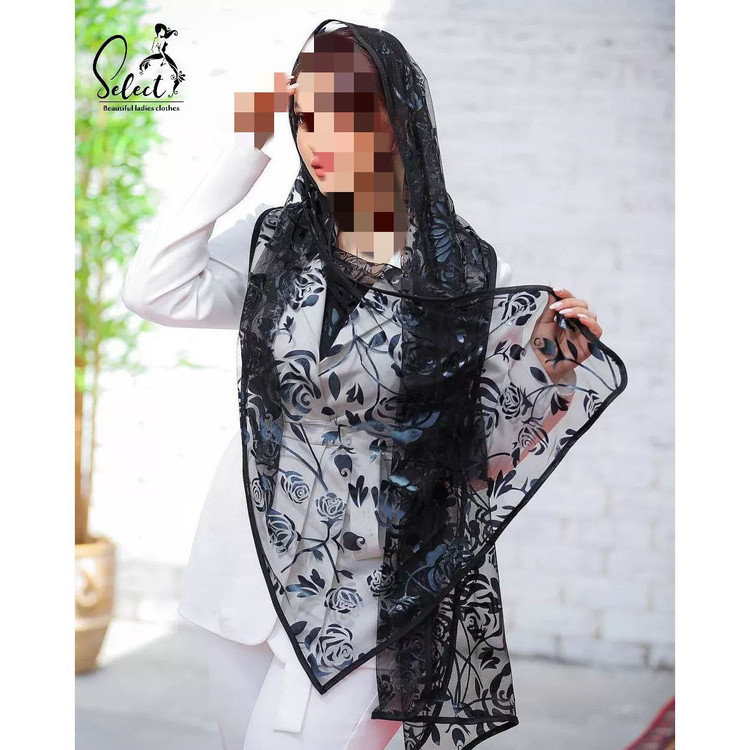 شال مشکی توری طرحدار قواره ۷۰×۲۰۰ تن شیک