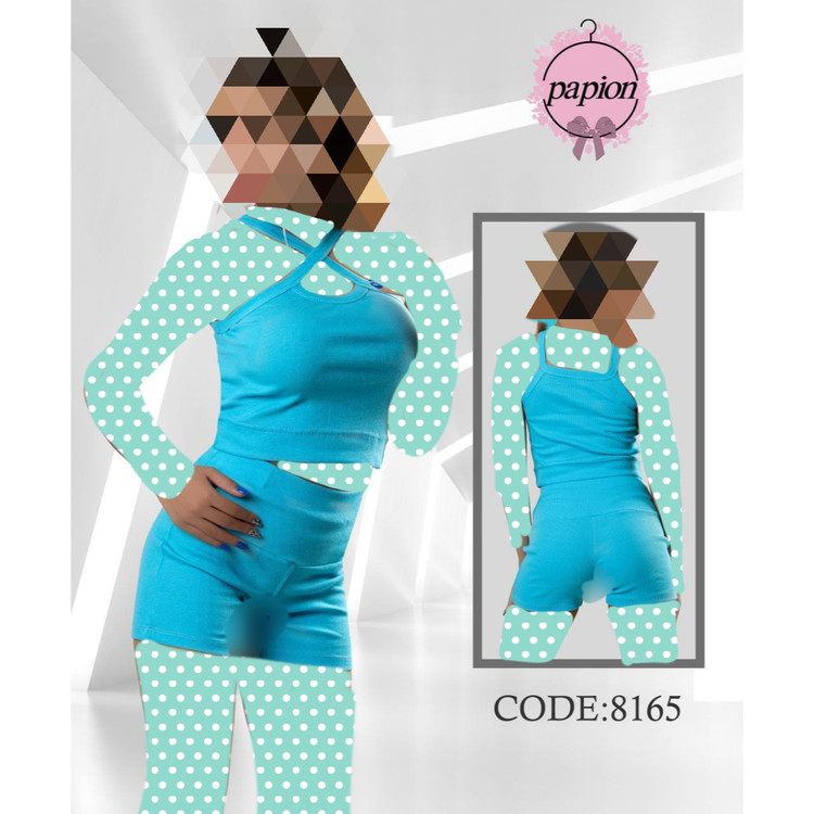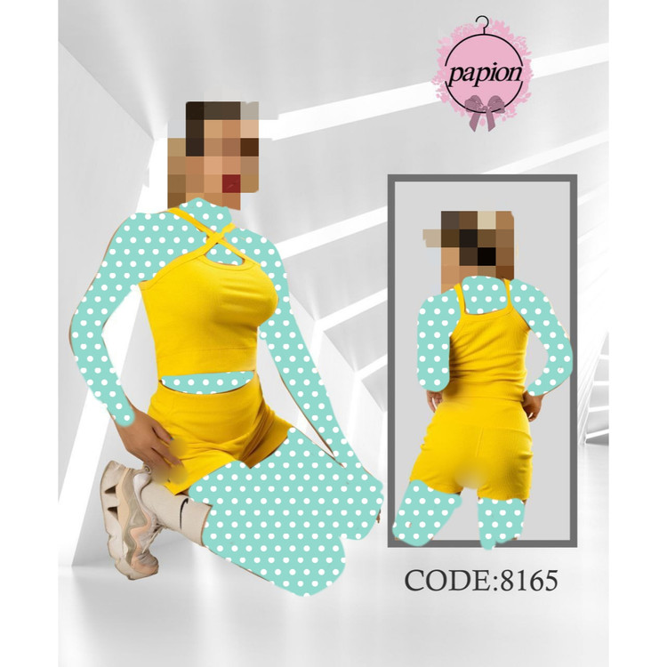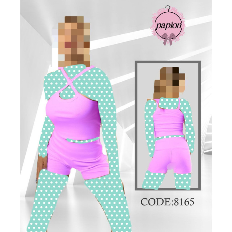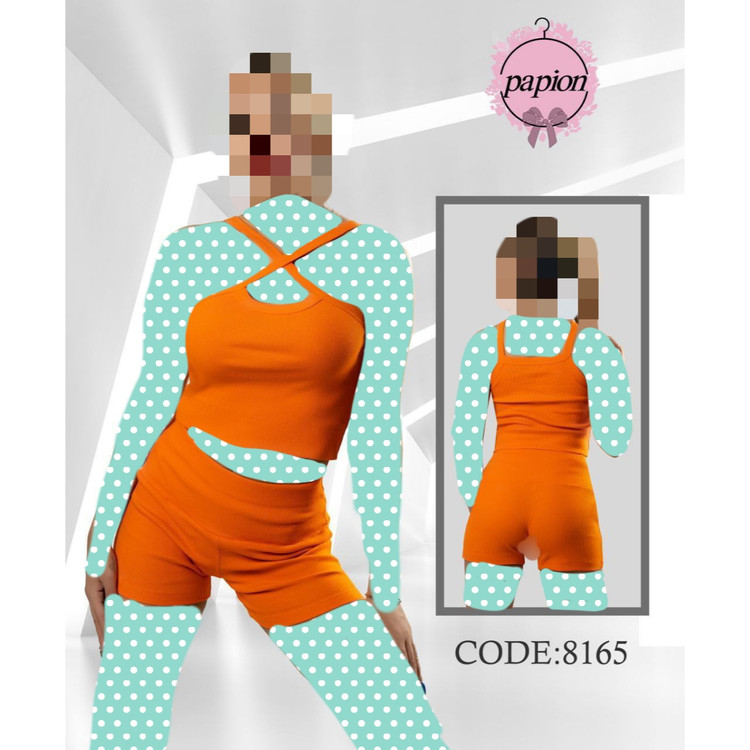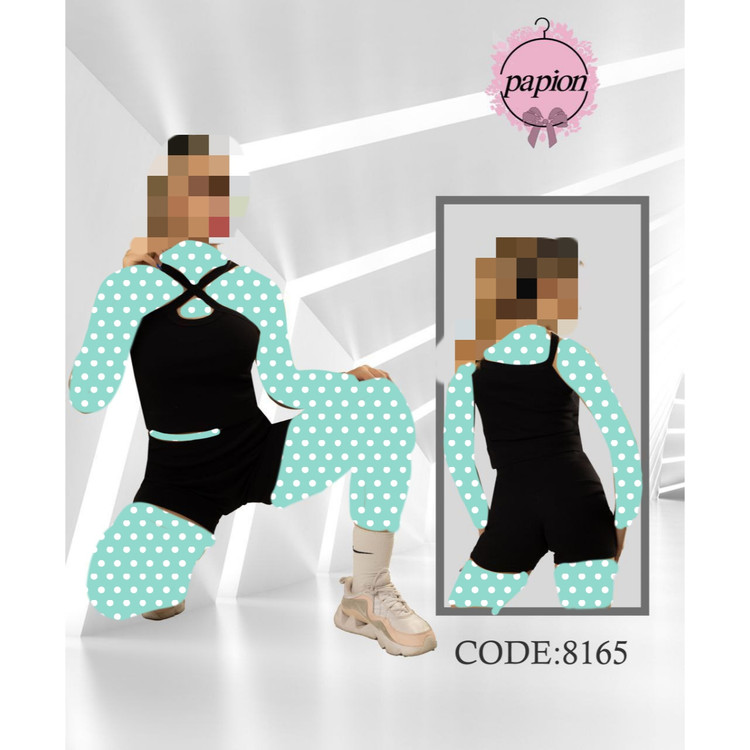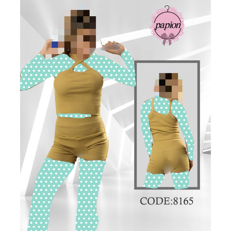 8165 ست کراپ نیمتنه شورتک فانریپ پنبه عالی فری سایز 36 تا 42 تن شیک