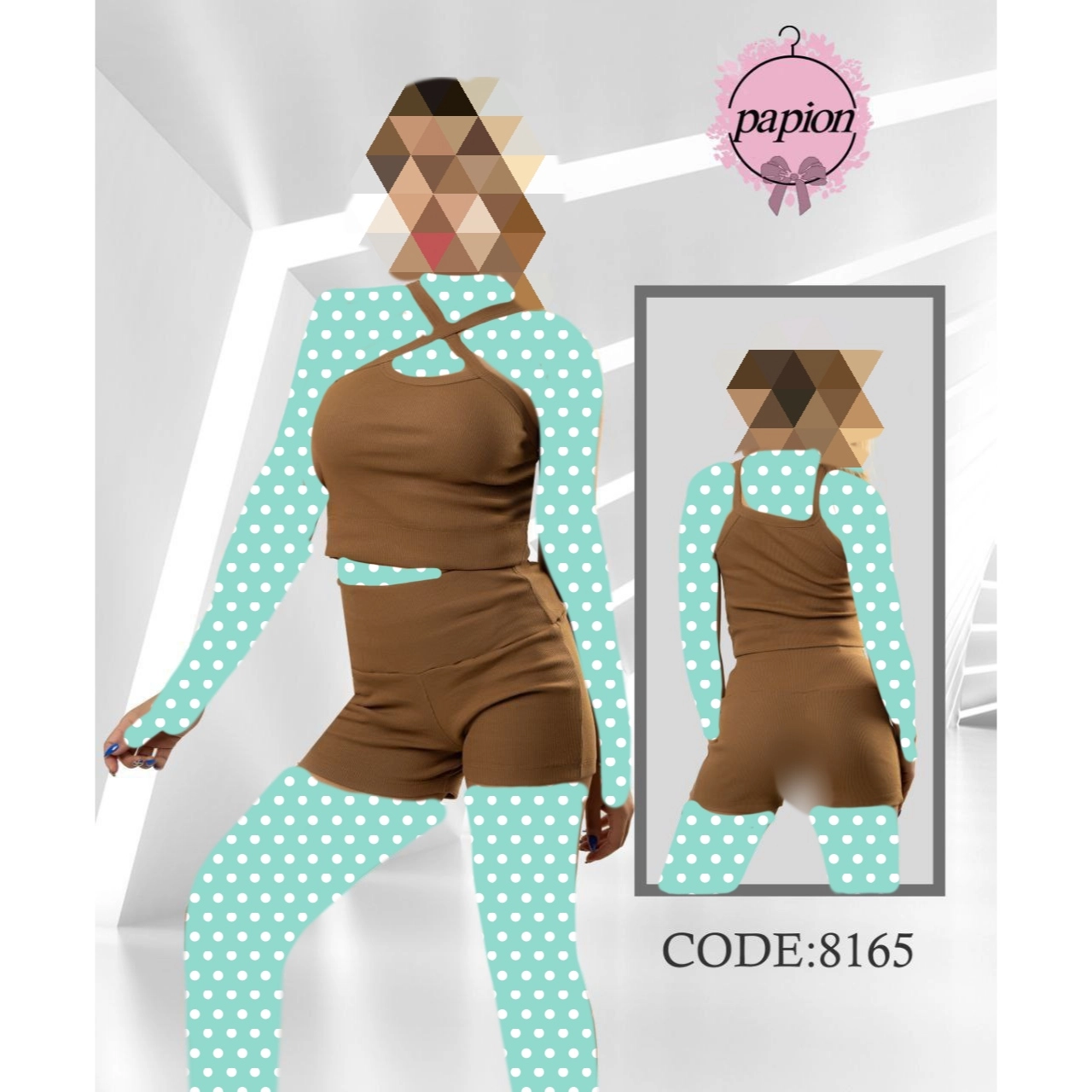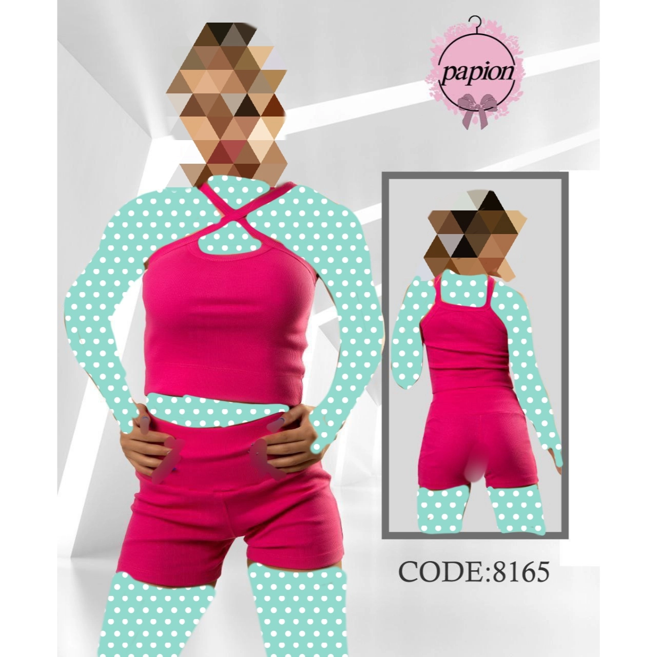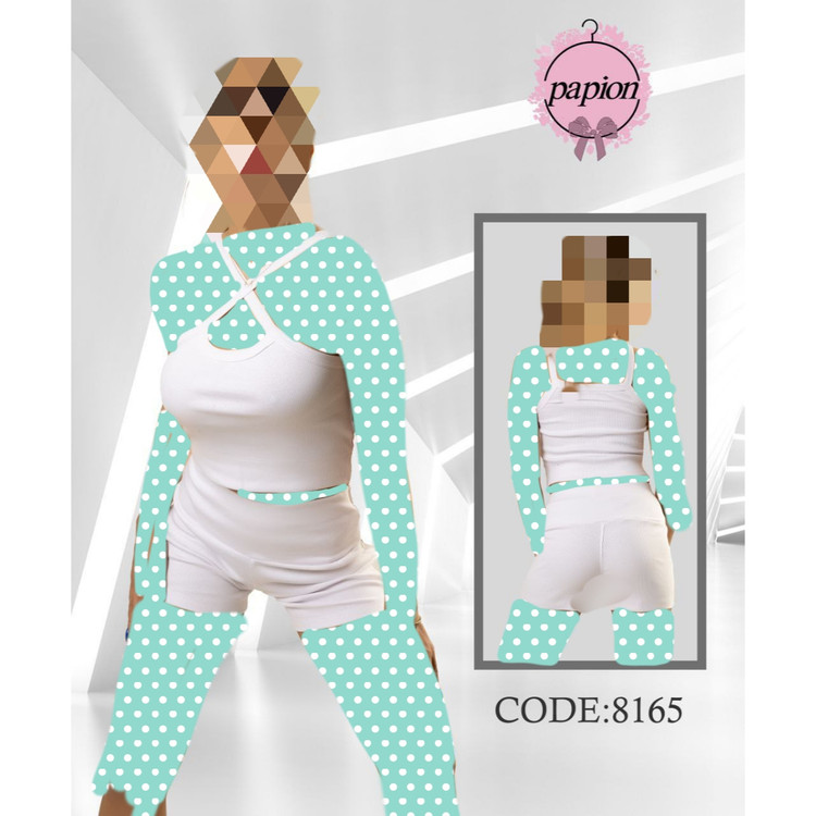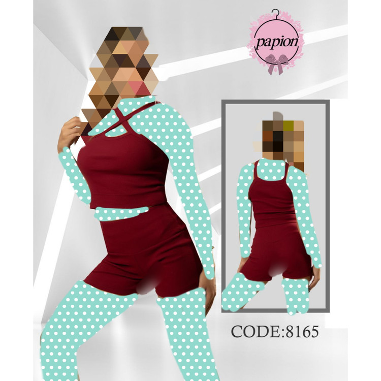 8165 ست کراپ نیمتنه شورتک فانریپ پنبه عالی فری سایز 36 تا 42 تن شیک