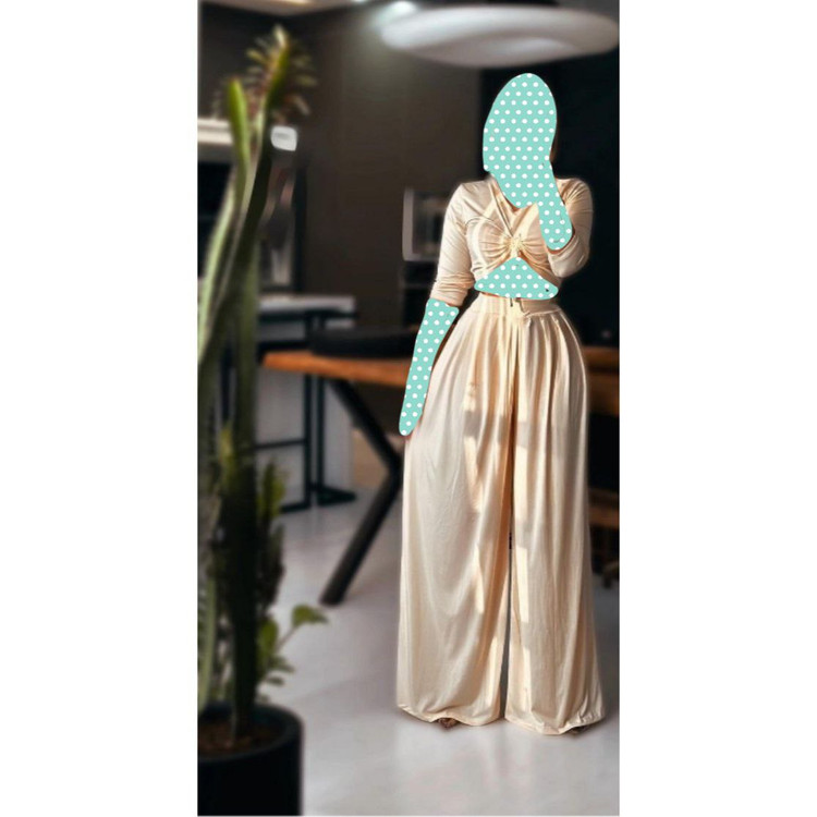 1405 کراپ‌ نیمتنه شلوار بلند بگ پیله دار سوپر فیلامنت نرم و لطیف فری سایز ۳۶ تا ۴۴ تن شیک