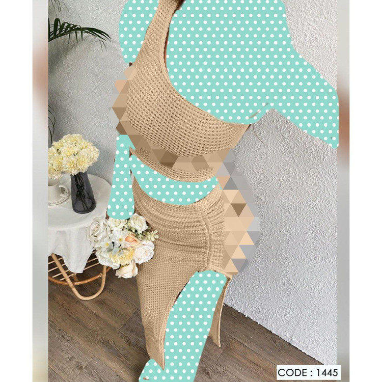 1445 ست کراپ دامن گتردار مراکشی بیسکوییتی فری سایز 36 تا 42 تن شیک