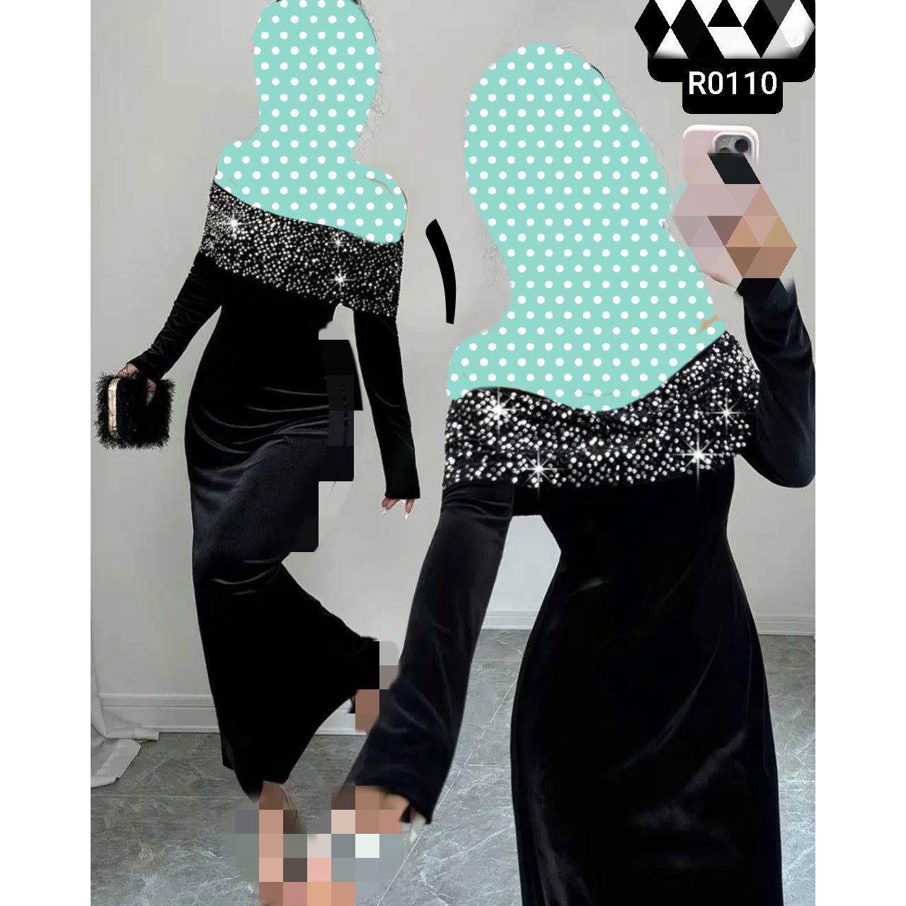 R0110 R0109 پیراهن ماکسی مجلسی نگینی غواصی عالی در ۲ مدل قد ۱۵۰ فری سایز ۳۸ تا ۴۲ تن شیک